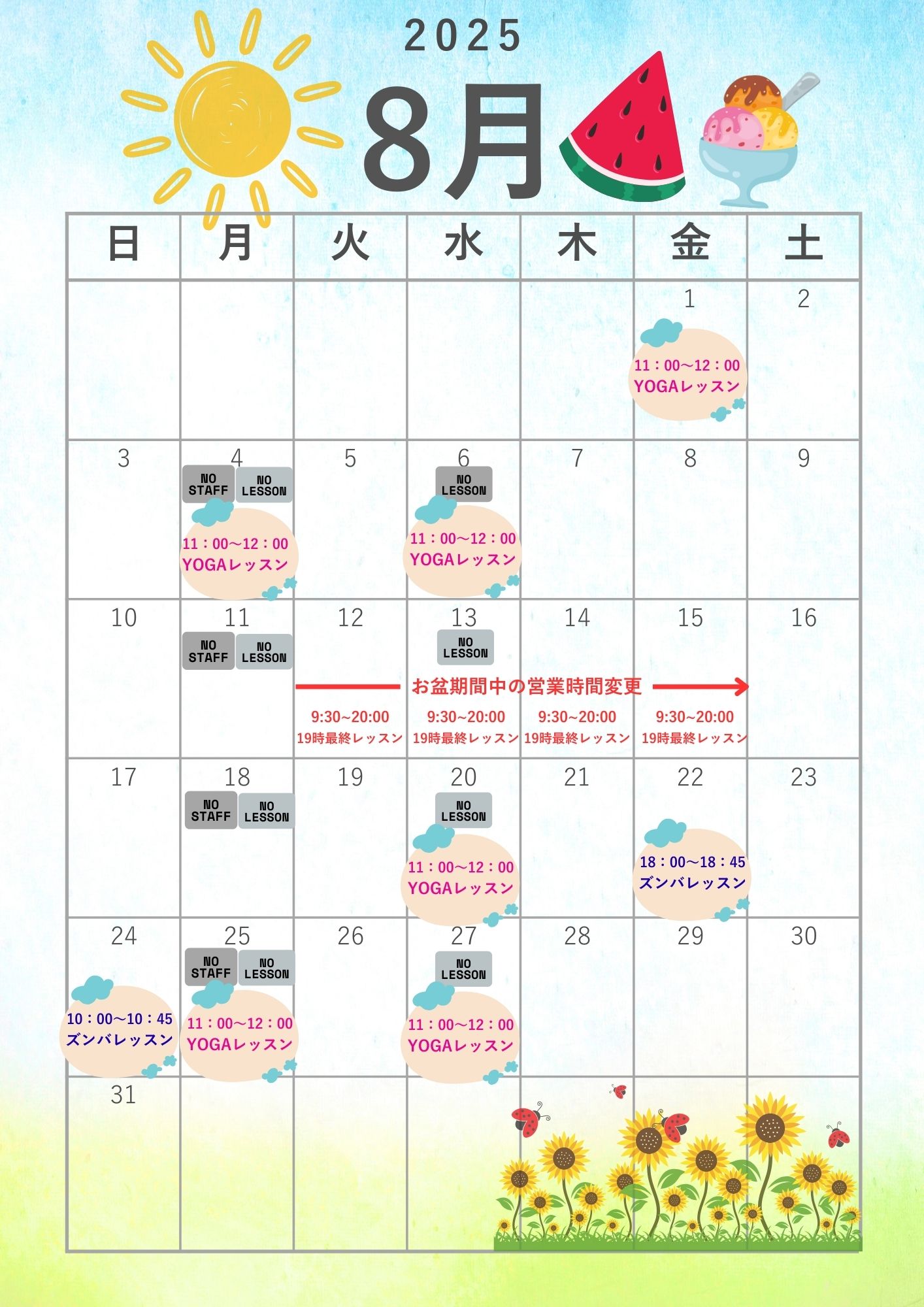 ※第二・第四水曜日レッスンなし(ジムとバーチャルは営業時間内で利用可能)